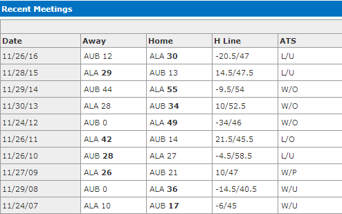 - Under is 5-2 in Crimson Tide last 7 games following a ATS win.