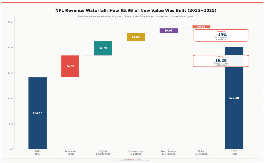 “The NFL is no longer a football league that happens to do digital. It’s a digital entertainment company that happens to play football.” — Sports Business Journal, 2025