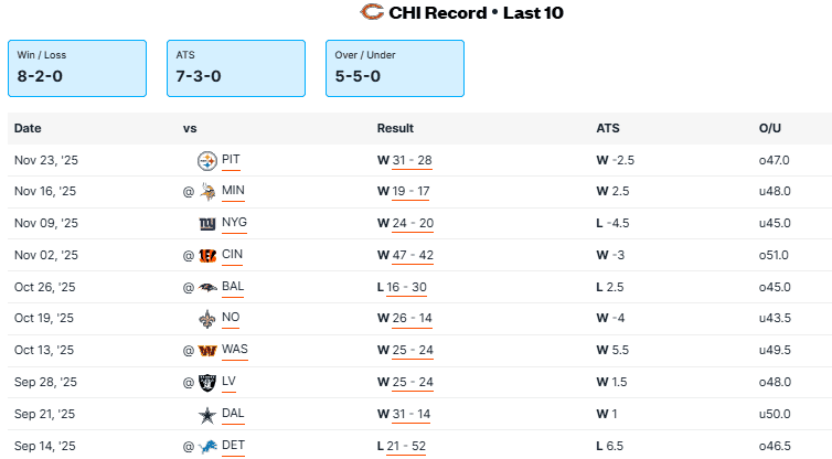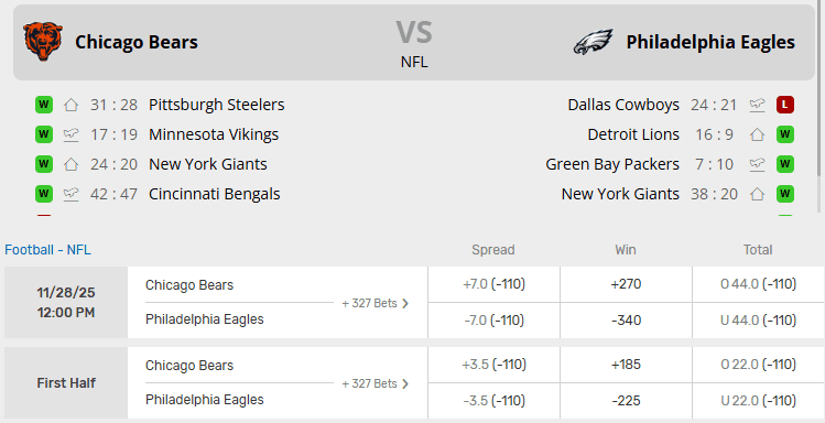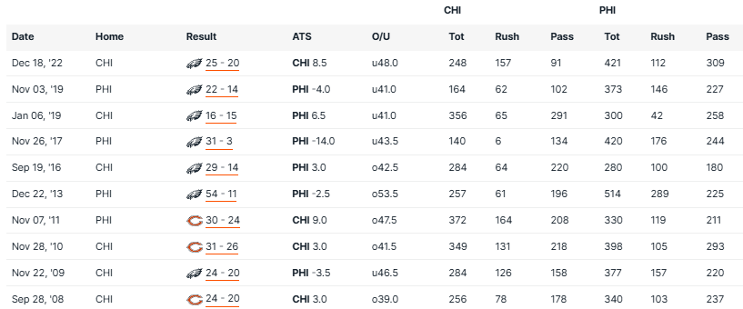 Bears vs Eagles Recent Meetings