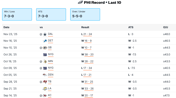 Chicago (8-3) at Philadelphia (8-3)