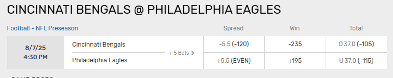 Cincinnati plans on playing their starters for several series in this one, but that doesn’t always mean it’s an automatic win. The Bengals haven’t won a preseason game since August 27, 2022. They were winless each of the last two Augusts, while Philly went 2-1 last season. It will be a fun atmosphere at The Linc tonight, as the Eagles begin their quest for back-to-back Super Bowl championships. I like the Bengals to win this one, but not cover.