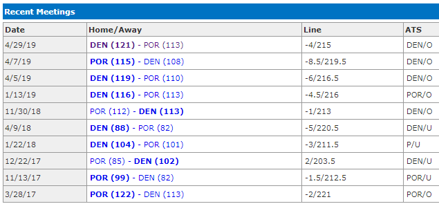 Trail Blazers are 1-4-1 ATS in the last 6 meetings in Denver.