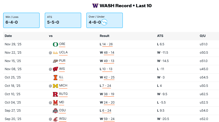 Boise State has had a decent season, but nothing like they’re used to. They definitely missed Ashton Jeanty in the backfield, but Maddux Madsen has helped this team to eight wins. The problem here, is that the level of competition in this L.A. Bowl is a lot higher than what the Broncos have seen since September. Boise has a couple of really bad losses in conference and the team didn’t even show up in their two biggest non-conference games. Washington has a very explosive offense that is going to be too much for Boise to handle. They also rank 21st in points allowed and will give Madsen fits. The Broncos may keep it close for a half, but the Huskies will be too good defensively in the second half and cruise to victory.