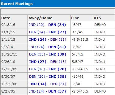 - Broncos are 0-6 ATS in their last 6 meetings in Indianapolis.