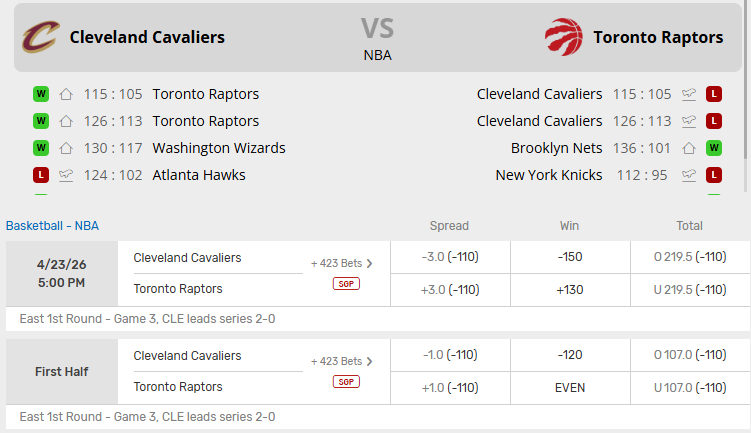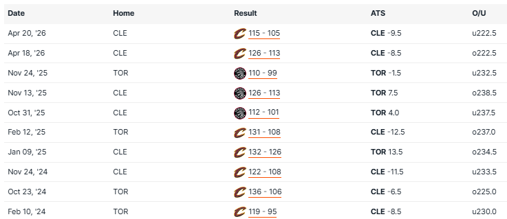 Cavaliers vs Raptors Recent Meetings