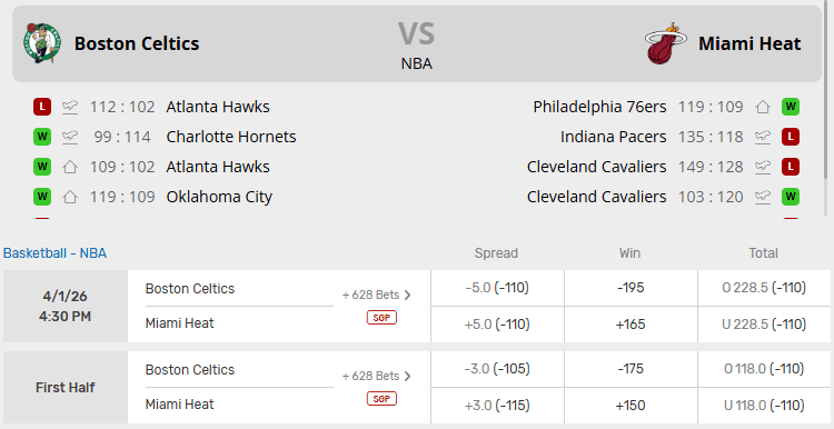 Boston is as healthy as they’ve been all season and it’s showing in the results. The C’s have won seven of their last nine games, while the Heat are trending in the opposite direction, losing seven of nine. Jaylen Brown is back and had a monster game against the Hawks. Norman Powell will miss his third straight game for the Heat, who have surrendered at least 121 points in each of their last seven losses. Boston is the superior team and should get an easy win tonight.