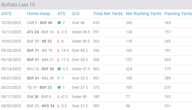 It’s quite simple: The Chiefs beat the Bills in the playoffs every time, while Buffalo dominates the regular season matchups. Kansas City has been on a roll lately, winning three in a row – all at home – but now go on the road for their toughest test to date. The Chiefs have already lost two road games, including their last one at Jacksonville. The Bills are 3-1 at home and have scored at least 30 points in all three of their victories. It’s another game that Buffalo really wants to win and I say they get it.