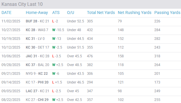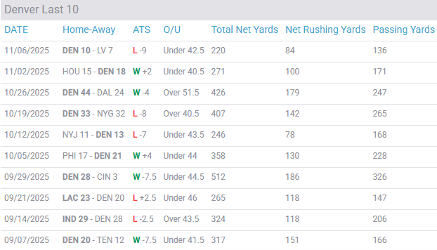 It’s been a rough go for the Denver offense with Bo Nix throwing three interceptions over the last two games. However, the Broncos keep finding ways to win thanks to a terrific defense that has recorded 46 sacks this season. The Chiefs lost a game at Jacksonville, won three in a row at home, then lost at Buffalo. That’s three losses away from home already this season, while Denver is a perfect 5-0 at home. Give me the points.
