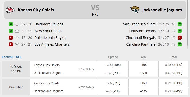 Look out for the Chiefs. After starting the season 0-2, Kansas City has gotten healthier and appear to be hitting their stride. Getting Xavier Worthy back was key and the offense is clicking again behind Mahomes. He has seven TDs to just one interception and the Chiefs put 37 up on Baltimore last week at home. Jacksonville is off to a 3-1 start but their schedule has been very easy: Carolina, Houston, Cincinnati and San Francisco. Mahomes has 27 touchdowns to eight interceptions on MNF and is 5-0 SU and 4-1 ATS against the Jaguars. Trevor Lawrence has already thrown four interceptions this season and I can see him turning it over at least once or twice against this K.C. defense. I know the Chiefs are a big public play, but it’s hard not to take them.