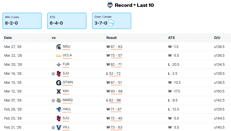 The way these two teams have been playing throughout the tournament, I can’t see this as a blowout on either side. Duke clawed their way to a win over St. John’s on Friday, while UConn did the same against Michigan State. Both teams have been playing terrific defense, which favors a lower scoring affair. Taking the points here seems like the smart move.