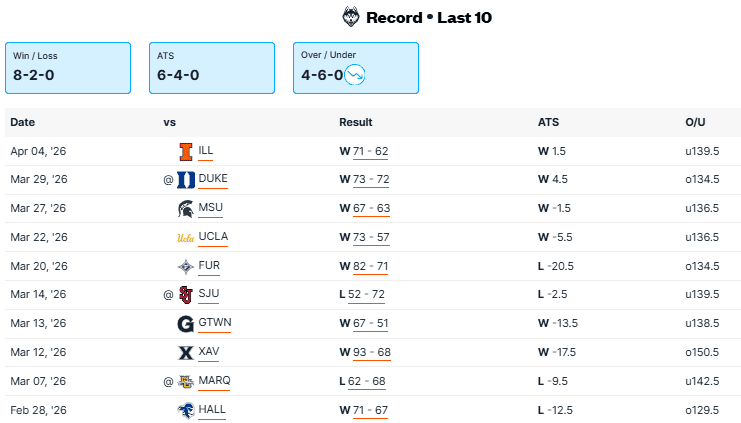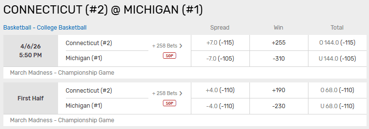 Michigan has certainly been impressive this tournament and should be favored in this one, but Connecticut has been battle-tested. Coaching could be a factor in this one, at least when it concerns the spread. UConn’s Dan Hurley has been as good as it gets in the big games. In his eight seasons with the Huskies, Hurley is 5-0 in the Final Four and 18-3 in all tournament games. He’s also 18-3 against the spread. Meanwhile, the Wolverines have played in seven national title games and they are just 1-6 and the Big Ten has lost eight championships in a row. Michigan has been the best team in March, but it’s hard to go against a UConn team that has beaten UCLA, Michigan State, Duke and Illinois to reach the final. Give me the points.