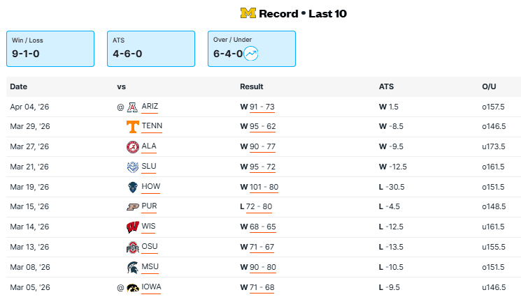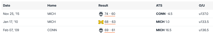 Connecticut vs Michigan Recent Meetings