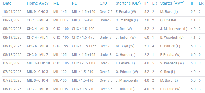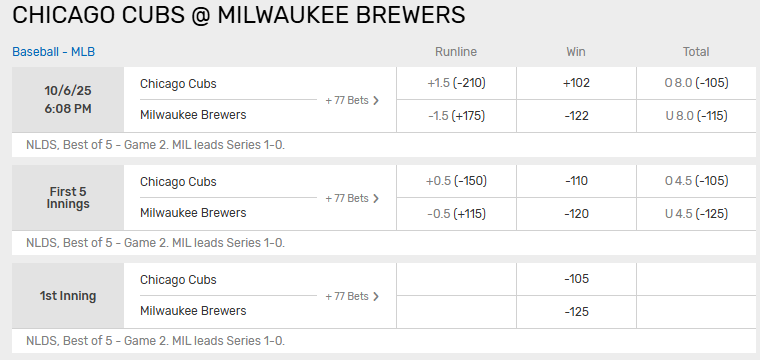 Milwaukee has all the momentum in this series after a dominating Game 1 and I don’t see them letting up. Imanaga had a solid season, but was awful down the stretch. He’s allowed at least three earned runs in six of his last seven starts and the Cubs lost two of the three times he started against Milwaukee. Ashby pitched in Game 1 and will get a spot start in this one. He has not allowed a run in almost a month – a span of eight appearances. The Cubs hit three home runs in Game 1, but they were all solo shots. They just can’t get enough men on base.