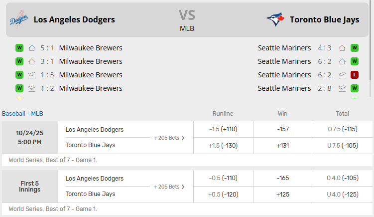 The Dodgers starting pitching will prove to be too much for Toronto in this series and it starts with Blake Snell in Game 1. Snell has been outstanding since September 10th, allowing a total of three earned runs over 40 innings of work. He is 5-0 in those six starts and has allowed just two hits in this postseason. Yesavage has been solid in two of his three outings in October, but this is the biggest stage against probably the best team in the league. The Dodgers will get to him and cruise to victory.
