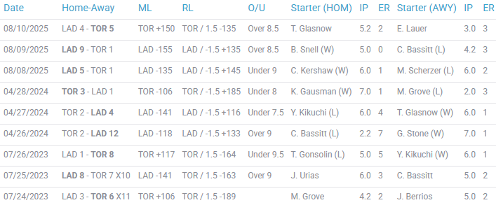 | Aug 16 | vs SD | W 6 - 0 | W -120 | U 7.5 | S | W | 6.0 | 5 | 0 | 0 | 3 | 2 | 0 | 96 |
