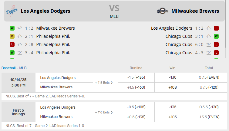 The Dodgers continued their red-hot run with a Game 1 win in Milwaukee last night and I like them once again tonight. L.A. won their last five regular season games, then dispatched the Reds in two games. They made quick work of the Phillies by winning the first two games on the road before winning in four. Starting pitching has been terrific for this Dodgers team and it was on display last night with a gem by Blake Snell. L.A. has won both games started by Yamamoto this postseason, while Peralta was hit hard by the Cubs in the NLDS. All that being said, I trust Yamamoto more in this one and I definitely trust the Dodgers lineup to carry them to another road victory.