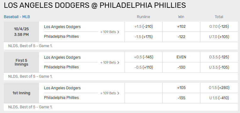 Opening Odds: Philadelphia -120/7