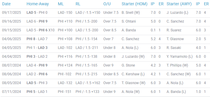 Dodgers vs Phillies Recent Meetings