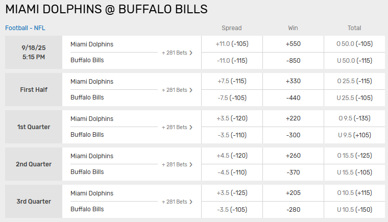 This is a terrible game to start Week 3 of the NFL schedule, but it’s a prime time game and people are going to bet it. Yes, the Dolphins have looked horrible through 2 weeks and the Bills are 2-0. But this is just too many points for me not to take. 12 is a lot in the NFL to lay and it’s a division game. Plus, the Dolphins have covered 4 of the last 5 trips to Buffalo and have been a dog in each one of them. Buffalo is just 2-5 ATS in their last 7 when favored by double digits. So, they play down a bit when they’re expected to win big. If this was a Sunday afternoon game, I wouldn’t even care about it. But let’s take the points and pray the Dolphins have enough pride and offense to keep up.