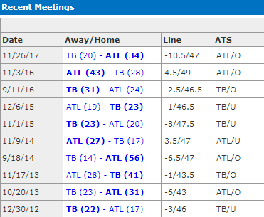 - Falcons are 6-2 ATS in their last 8 vs. NFC South.