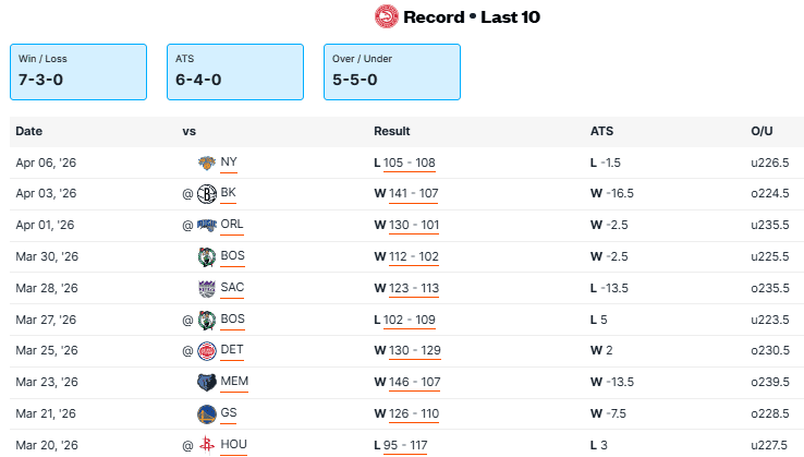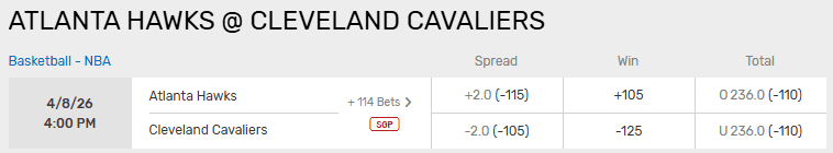 With the Cavaliers virtually locked into the four-seed in the Eastern Conference Playoffs, there isn’t much to play for. Cleveland is also monitoring the minutes of James Harden and Donovan Mitchell down the stretch. Atlanta is the fifth-seed right now, but could fall all the way to 10 if they’re not careful. The Hawks have been a really solid road team this season and have more to play for than the Cavs. I’ll take the points.