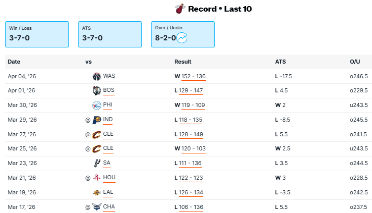 Neither team is playing very well right now, but Miami has been really bad of late. The Heat have dropped eight of their last 11 and are allowing an average of 129.9 points a game over that stretch. Toronto is just 4-4 over their last eight games, but have been on the road a lot. The Raptors won both games in Miami earlier this season and are in better form right now. I like the home team.