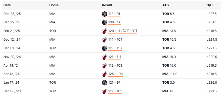 Heat vs Raptors Recent Meetings