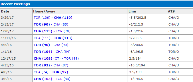 - Hornets are 13-4 ATS in the last 17 meetings in Toronto.