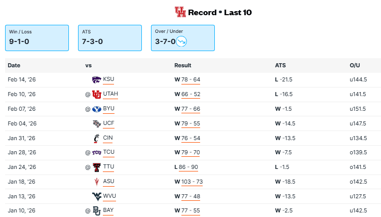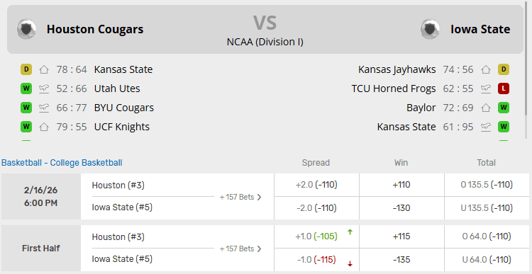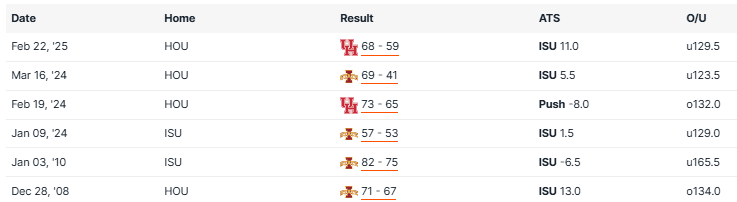 HOUSTON VS IOWA STATE RECENT MEETINGS