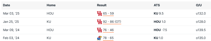 Houston vs Kansas Recent Meetings