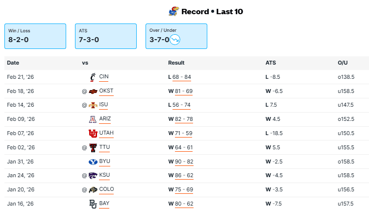 Houston comes into this contest with back-to-back losses and I expect them to bounce back strong against a struggling Kansas team. The two losses came last week to then No. 6 Iowa State and No. 4 Arizona. Three losses in a row would be very rare for this team. You have to go back nine years to find the last time the Cougars dropped three straight. Kelvin Sampson will have his kids focuses. The Jayhawks have lost two of three, including an embarrassing home loss on Saturday to Cincinnati. Superstar Darryn Peterson leads Kansas with 19.8 points a game and has nailed 45 three-pointers in just the 16 games he’s played. However, he has reached 20 points just once in the last seven games dealing with cramping issues. I like Houston’s defense to silence the Allen Fieldhouse crowd.