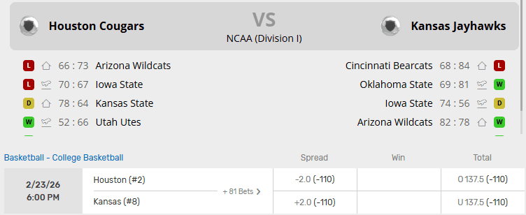 Houston vs Kansas Recent Meetings