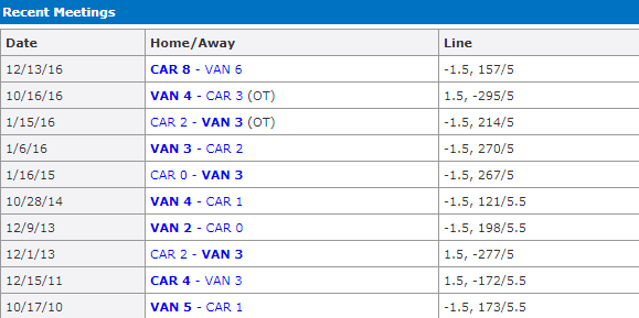 Carolina (11-9-5) at Vancouver (13-10-4)