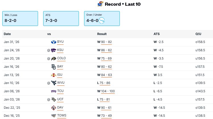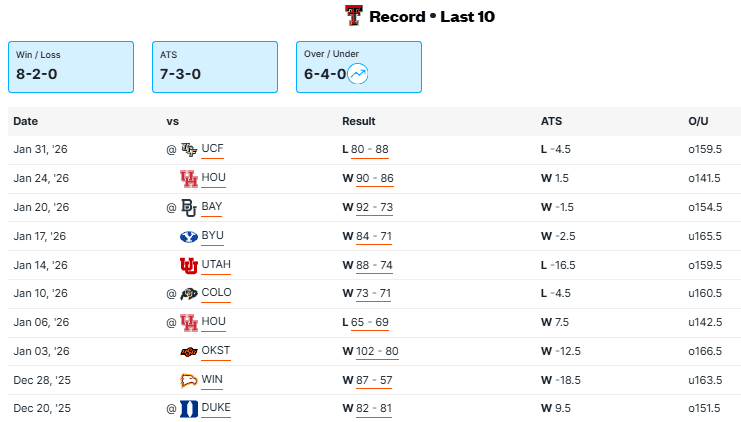 This is a great matchup of two teams tied for third place in the Big 12. Kansas is coming off an emotional win against BYU after hosting College Gameday, while the Red Raiders looked sluggish in an early afternoon loss at Central Florida. This Texas Tech team, like most basketball teams, is better at home. They have wins over Houston and BYU already and are on a 7-3 ATS run overall. All five starters for this Texas Tech team can shoot the three. The Jayhawks also lost to UCF on the road, as well as at West Virginia. The uncertainty of Darryn Peterson’s availability makes taking Kansas risky. Lubbock has one of the best crowds in the country and that will push the Red Raiders to a big win and cover against Kansas.