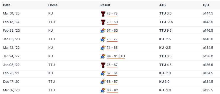 KANSAS VS TEXAS TECH RECENT MEETINGS