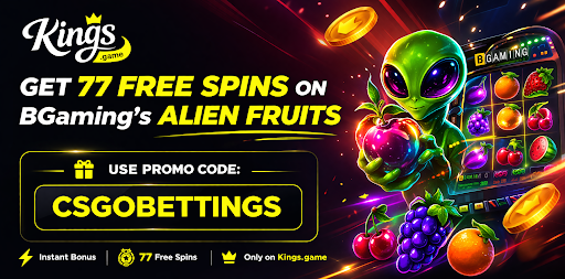 New members can claim the latest Kings Game Casino Bonus 77 free spins on Alien Fruits when they join the platform with “csgobettings” that can help them unlock the no-deposit bonus!