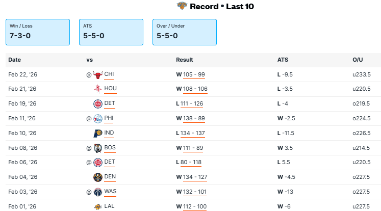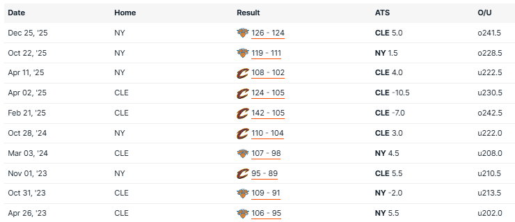 Knicks vs Cavaliers Recent Meetings