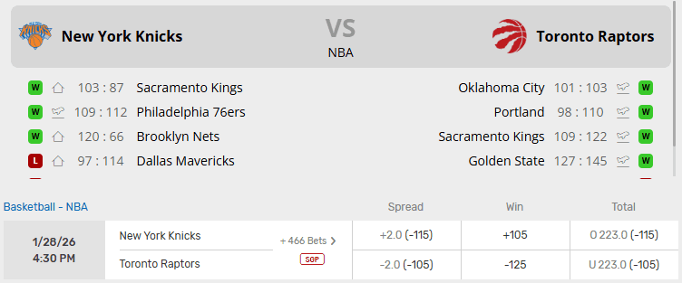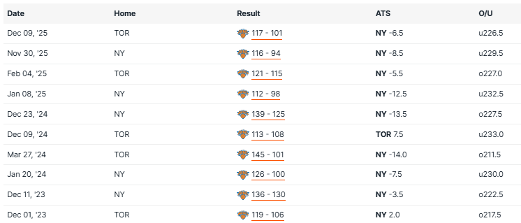 Knicks vs Raptors Recent Meetings
