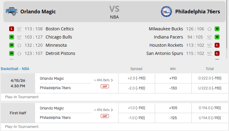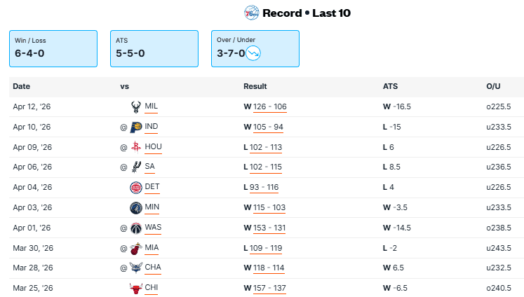Joel Embiid may not be playing in this game, but I still give the edge to the Sixers over the Magic. Orlando blew a big chance of hosting this game after losing to the Celtics on Sunday, who sat their top seven scorers. The Magic have been inconsistent all season, while the Sixers are at their best when they were healthy. Edgecomb and Maxey put up great seasons, while Paul George has averaged 21 points since returning on March 25. Philly took two of three during the regular season, but only one of those came after Thanksgiving. That was a 103-91 Sixers win at Orlando on Jan. 9. Orlando has the talent to win this game, but the home court advantage will be enough for Philly to push through.