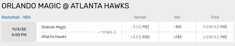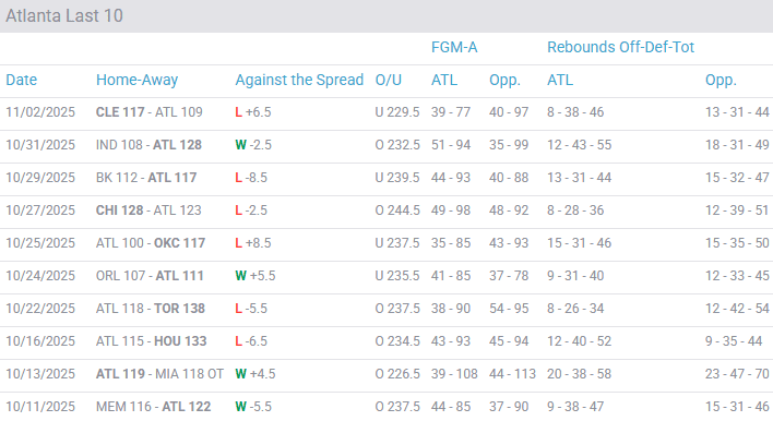 | Oct 24, '25 | ORL | 111 - 107 | ATL 6.0 | u235.5 |
