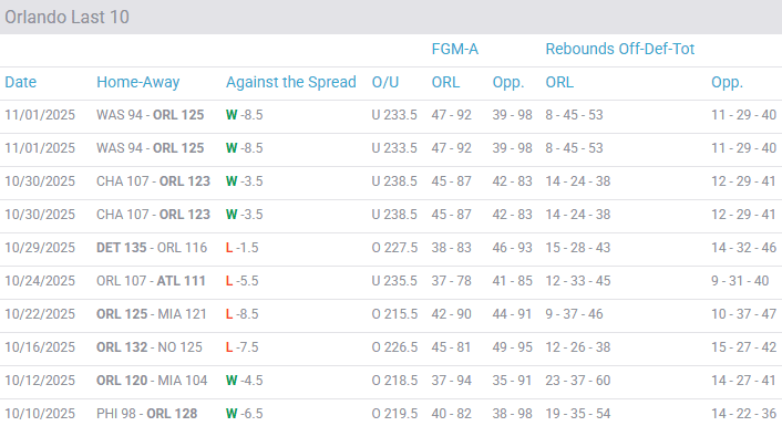 | Nov 09, '23 | ORL | 120 - 119 | ORL 3.5 | o232.5 |