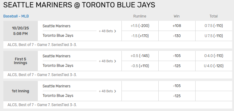 This is a rematch of Game 3 in which we saw the highest scoring game of the series thus far. Kirby was hit hard for eight runs over four innings, while Bieber held his own over six innings. As I mentioned yesterday, every game of this series beyond Game 1, has gone Over the total. I can see that trend continuing tonight. The Blue Jays have their swagger back after a sluggish start to the series. If I had to choose a winner, I would take Toronto. However, I really like the Over.