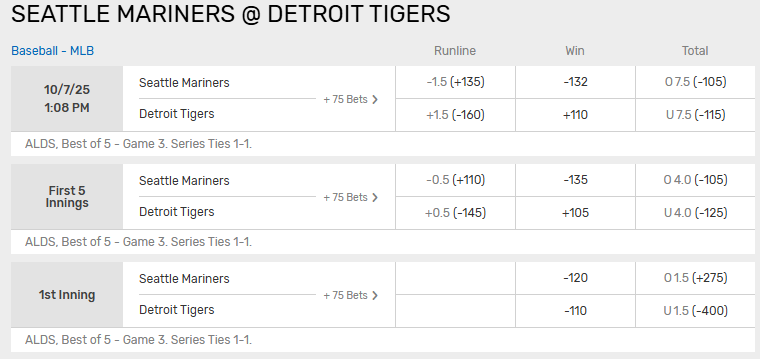 Although I give the slight edge to Seattle in this game, I like the Under even better. This has already been a low-scoring series and things are getting tighter as we move to Detroit. Gilbert and Flaherty have pitched very well lately and the game will be played in the late afternoon. That means shadows around home plate that always seem to favor the pitching. I like the Mariners to win this game 3-1 or 4-2.