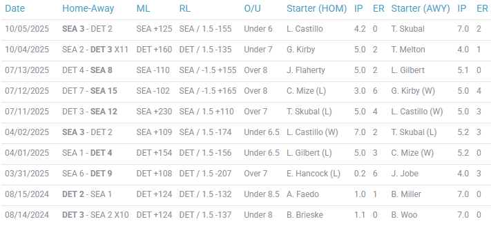 | 8/30/25 | @ CLE | S | L | 3-4 | 6.0 | 3 | 3 | 3 | 6 | 2 | 1 | 93 | 15.5 | 1.00 |