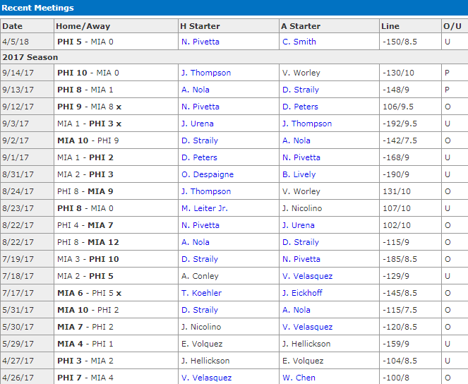Pitchers: Marlins – Dillon Peters (1-0, 0.00 ERA) | Phillies – Vince Velasquez (0-1, 13.50)