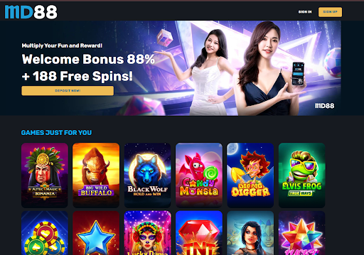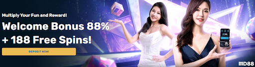 The headline promo on MD88 is simple to parse: 88% match plus 188 free spins for new sign-ups. That’s straightforward—extra bankroll plus a decent pile of spins to test the waters. Site copy also points to weekly cashback, a sports welcome, and a loyalty setup with tiered perks. Wagering for most welcome/deposit offers sits in the 30×–40× range per the site FAQ style guidance, with free-spin deals usually steeper. Read the promo cards, keep an eye on expiry, and you’ll be sweet.