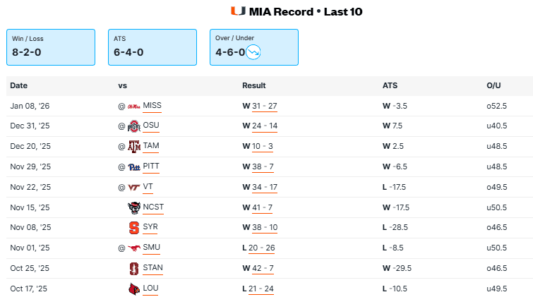 I’ll start by saying I think Indiana will win this game, but it won’t be as easy as their first two playoff games. Miami is physical enough up front on both sides of the ball to keep this close. I’m not a big fan of Carson Beck, but he’s come up with some big plays lately and he’ll need to do it again. Miami seems to play better as an underdog than a favorite. The ‘Canes have been an underdog three times this season and they won them all outright. Even though it’s not technically a home game, Miami will feel right at home in their own stadium. They don’t have to travel and they’ll feel more comfortable in their own facilities. Everyone is already handing Indiana the national title, but Miami won’t go down without a fight.