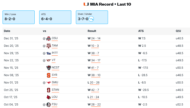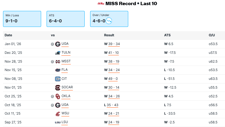 Miami FL vs Ole Miss Recent Meetings