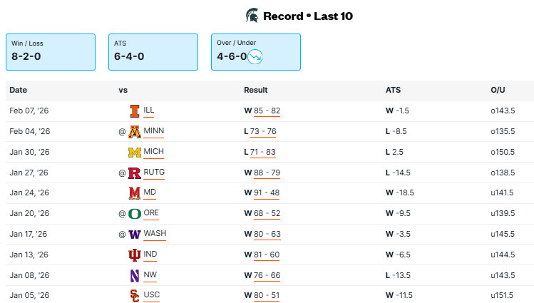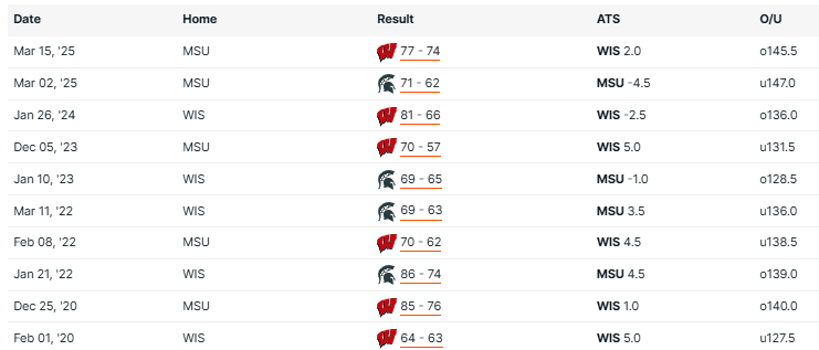 MICHIGAN STATE VS WISCONSIN RECENT MEETINGS
