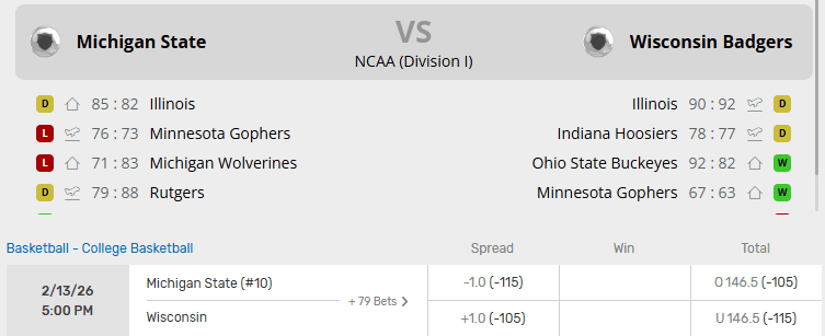MICHIGAN STATE VS WISCONSIN RECENT MEETINGS